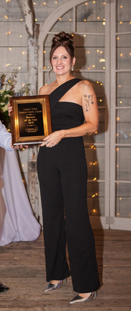 Business of the Year Award went to Austin Telco Federal Credit Union. This award recognizes business that has strengthened Greater Lockhart’s economic vitality and demonstrated meaningful confidence in the community’s future. The recipient shows a clear, positive impact on the local business community through growth and investment, such as expanding facilities, creating new services or offerings, hiring additional employees, or other actions that measurably benefit the area. Austin Telco invests back into the people they serve through a “people helping people” approach—supporting local initiatives and programs that strengthen families, students, and small-town life.