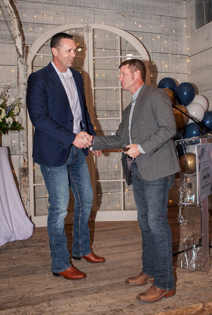 Agribusiness of the Year was awarded to Barking Dog Ranch. This award recognizes business or individual whose work has provided outstanding service to agriculture or an agriculture-related industry. This award honors the lasting role agriculture plays in the area’s heritage and continued success. Since 2018 Bob and Denise Riendeau Barking Dog Ranch has operated a farm located outside of Lockhart that raises animals and processes and donates meat and eggs to many groups that serve people with food insecurities. They also do educational outreach programs for young and old to familiarize them with sustainable farming practices.