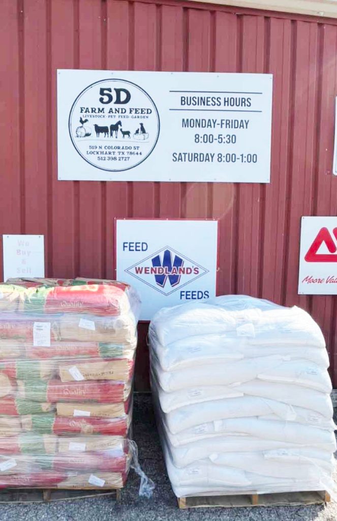 5D Farm and Feed, a family-owned and operated drive-through feed store, was born out of a simple inspiration. “We were inspired to open 5D Farm and Feed to serve and support the agriculture community of Lockhart and Caldwell County with quality animal feeds and products,” said Jeanine Dailey, co-owner of the business. “Our mission remains the same today.”