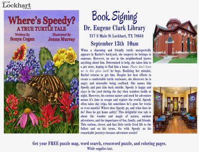 The Dr. Eugene Clark Library will welcome children’s author Sonya Cogan and illustrator Jenna Murry on Saturday, September 13, 2025, ... -