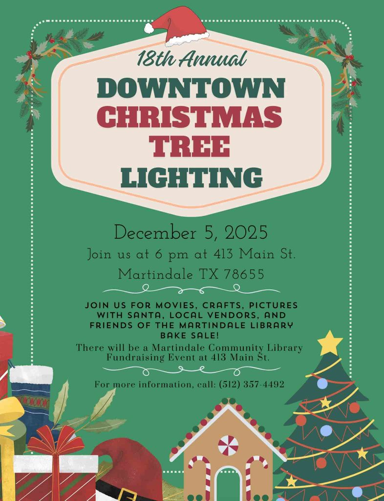 Santa Claus is coming to Martindale. Join us on December 5, 2025, for the 18th Annual Downtown Christmas Tree Lighting.