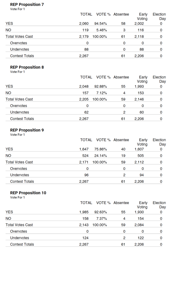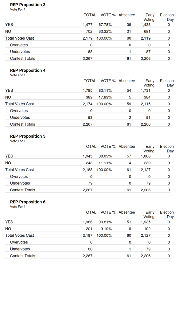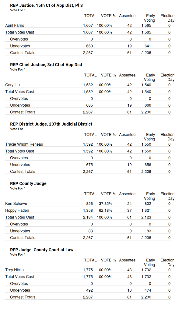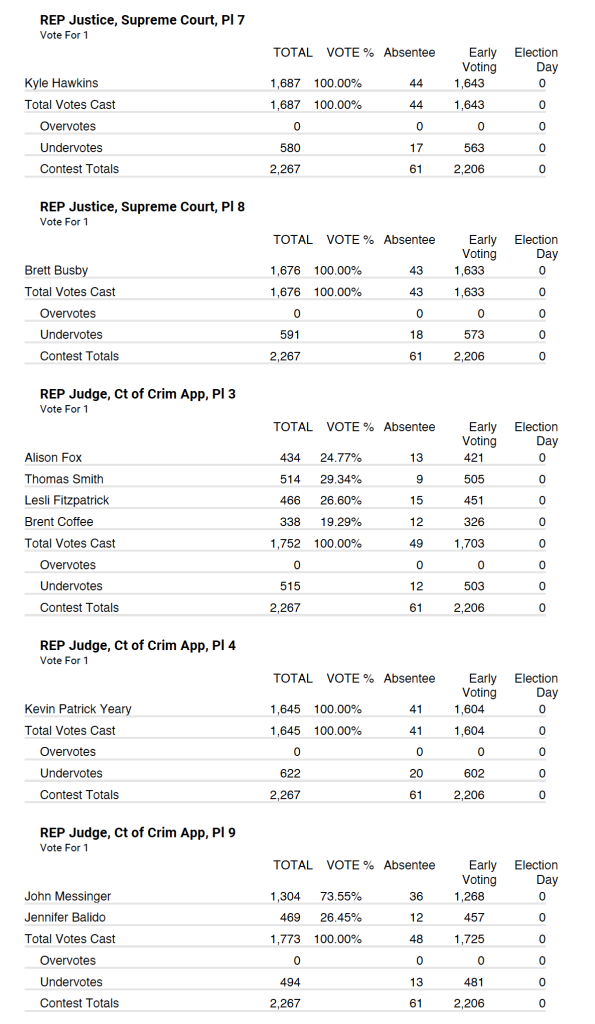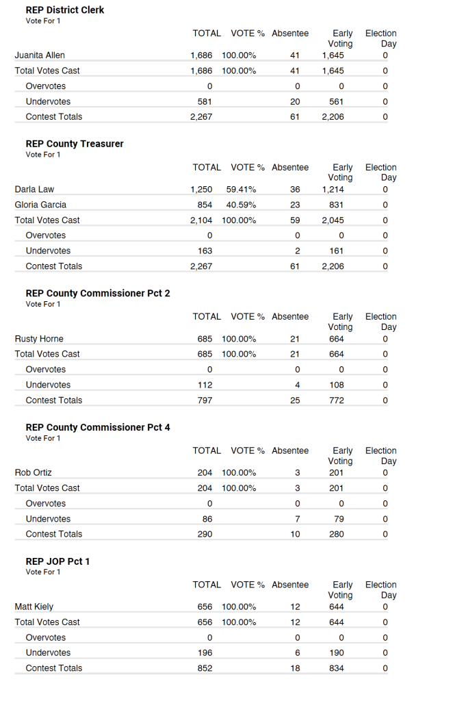 Republican party tallied 2,267 total votes with 61 being absentee and 2,206 being early voting.