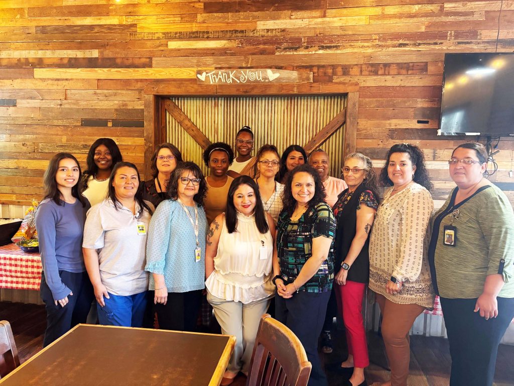 Above, Celebrating Gary Job Corps Professional Administrative Assistant Day with lunch at Black’s BBQ. Deputy Center Director Chris Roff shared with the group the thanks from the staff and students for a wonderful job every day. Pictured are Top Row: Justis’ Powell, Marisol Torres, Middle Row: Lanisha Long, Melinda Good, Trinitee Taylor, Vicky Alejandro, Dorinda Branch, Front Row: Leilah Rodriguez, Jenny Hernandez, Helen Cervantez, Erika Garcia, Laura Pfeil, Michelle Jackson, Lisa Douglas, Katy Lopez, not pictured: Amber Brown. Thanks, thanks, thanks, for all you do every day.
