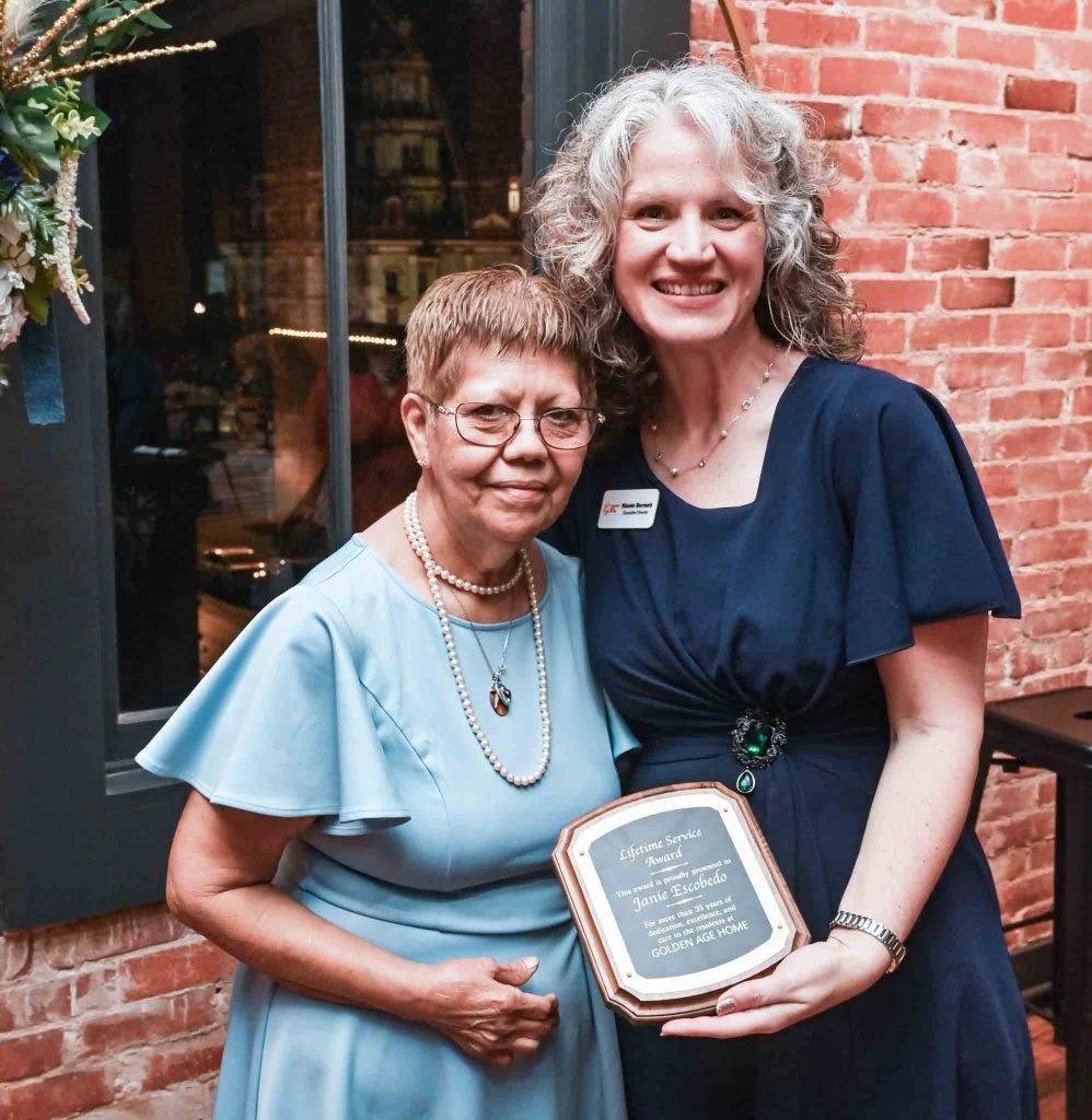 Above, Janie Escobedo pictured with Nicole Burnett, Executive Director after receiving the Lifetime Service Award.