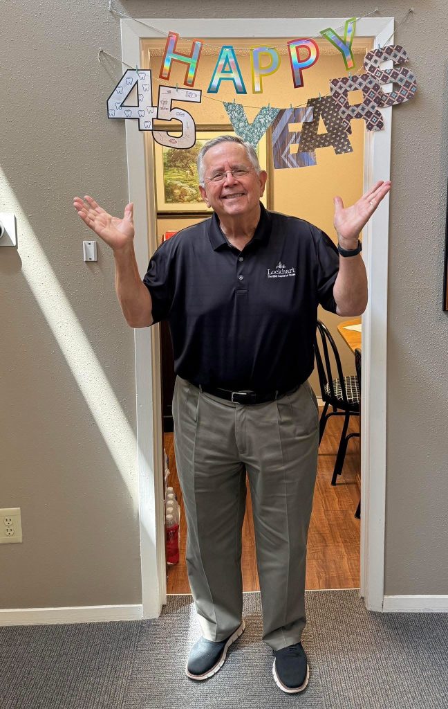 July was Dr. Lew White, DDS’s 45th anniversary serving his patients in his practice in Lockhart.