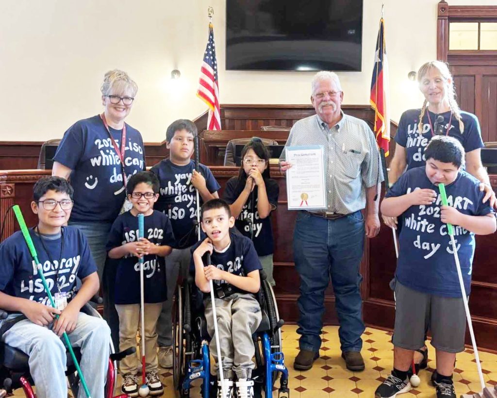To mark the day, Lockhart Lions visited Judge Hoppy Haden at the courthouse, where he read Mayor Lee White’s official ‘White Cane Day’ Proclamation. Afterwards, the students put their independence skills into practice by walking to the store and picking out some tasty snacks.