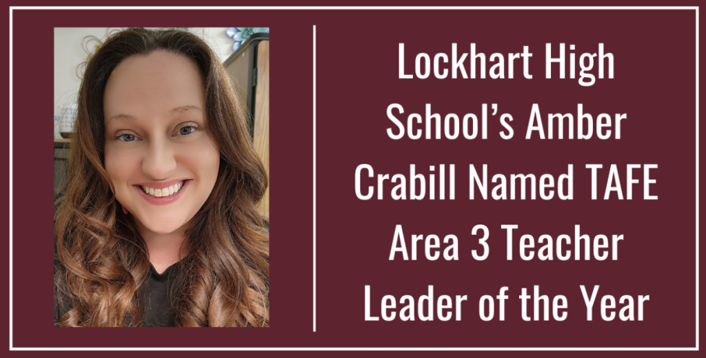 Lockhart ISD and Lockhart TAFE (Texas Association of Future Educators) are proud to announce that Amber Crabill has been named the TAFE Area 3 Teacher Leader of the Year. With over 21 years of dedication to Lockhart ISD and its aspiring educators, Ms. Crabill has made a profound impact on students and the future of education.