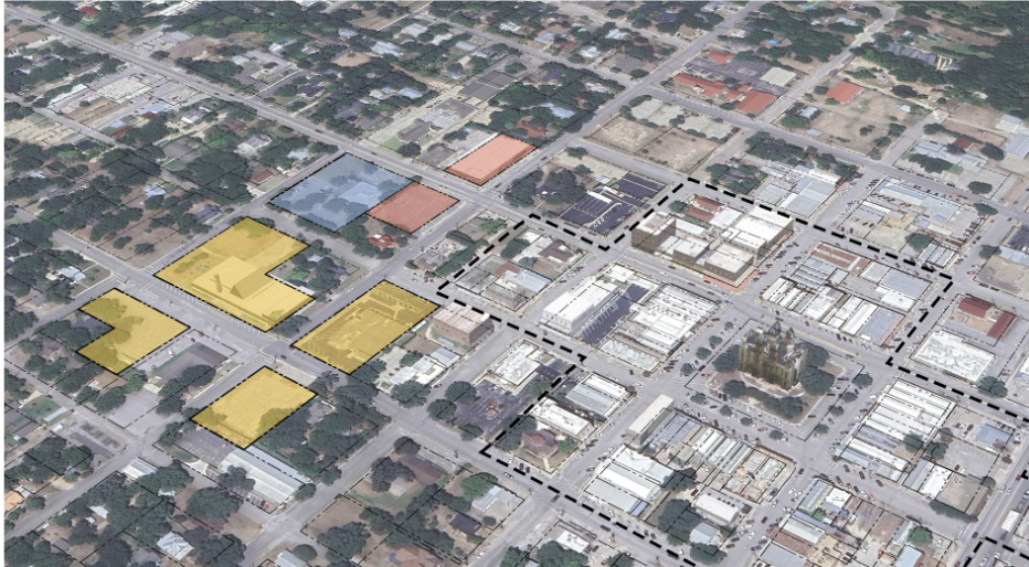 The property includes land owned by First Baptist Church, the City of Lockhart and the Austin Community College District. The ACC owns the former Ford Building and a nearby lot could eventually be part of the larger plan. For now, the city is focused on how existing zoning shapes the possibilities.